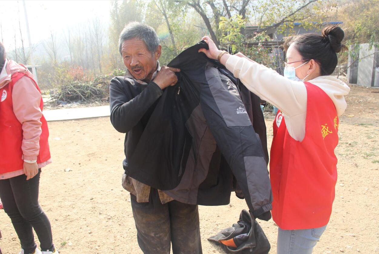 2020年10月31日,冬季供暖的前一天,盛淼愛心基金會一行10人,帶著厚厚的棉被、防寒衣物再次來到了靈壽縣寒巴村,為孤寡老人送上冬日的溫暖。